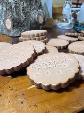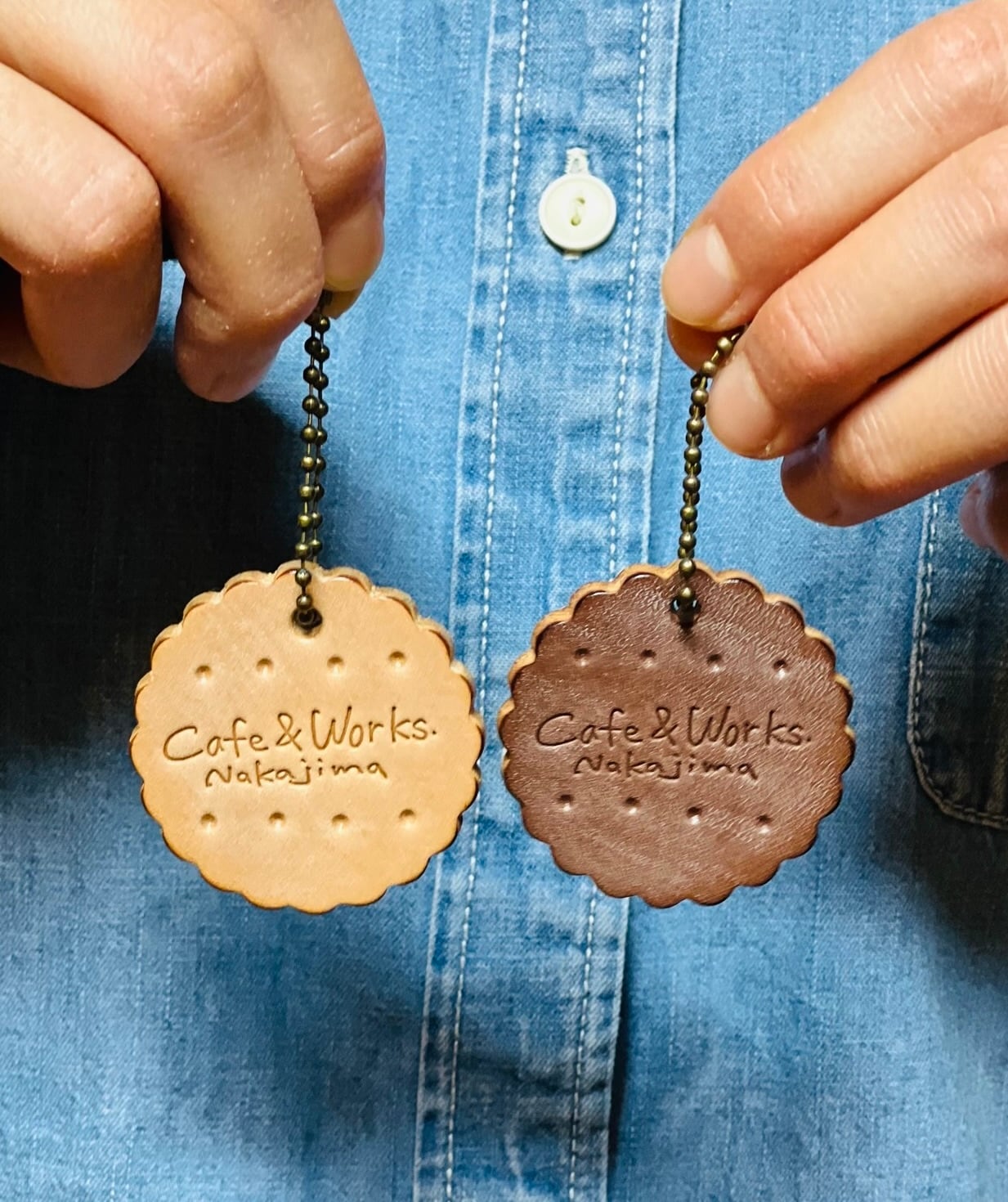 このビスケット型チャームは、上質な本革素材が特徴です。厚手のレザーで作られているので、しっかりとした存在感があります。バッグやキーホルダーなどに付けて使うことができます。